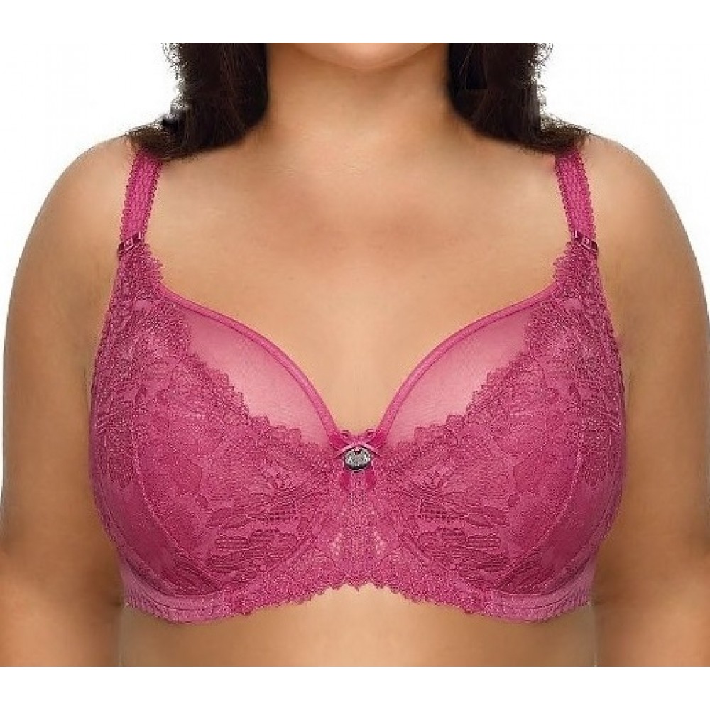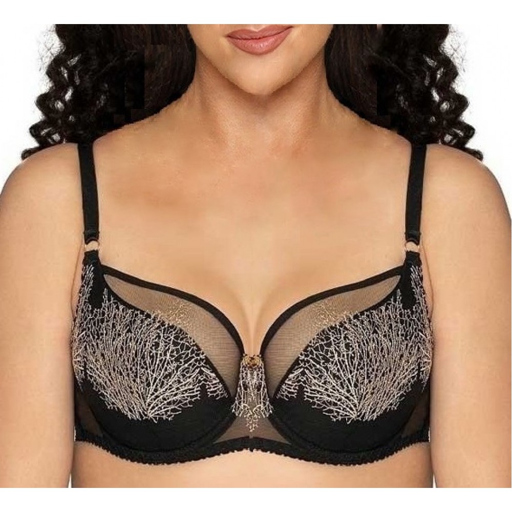 Бюстгальтер із жорсткими чашками, верхня лінія з ніжної сітки, прикрашена квітковим мотивом. Чашки н..