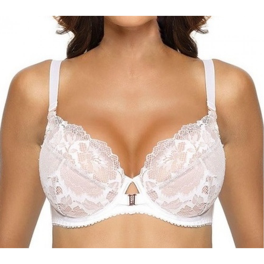 Напівм'який бюстгальтер з мережива з квітковим мотивом. Чашки на кісточках, лямки незнімні, по колу ..