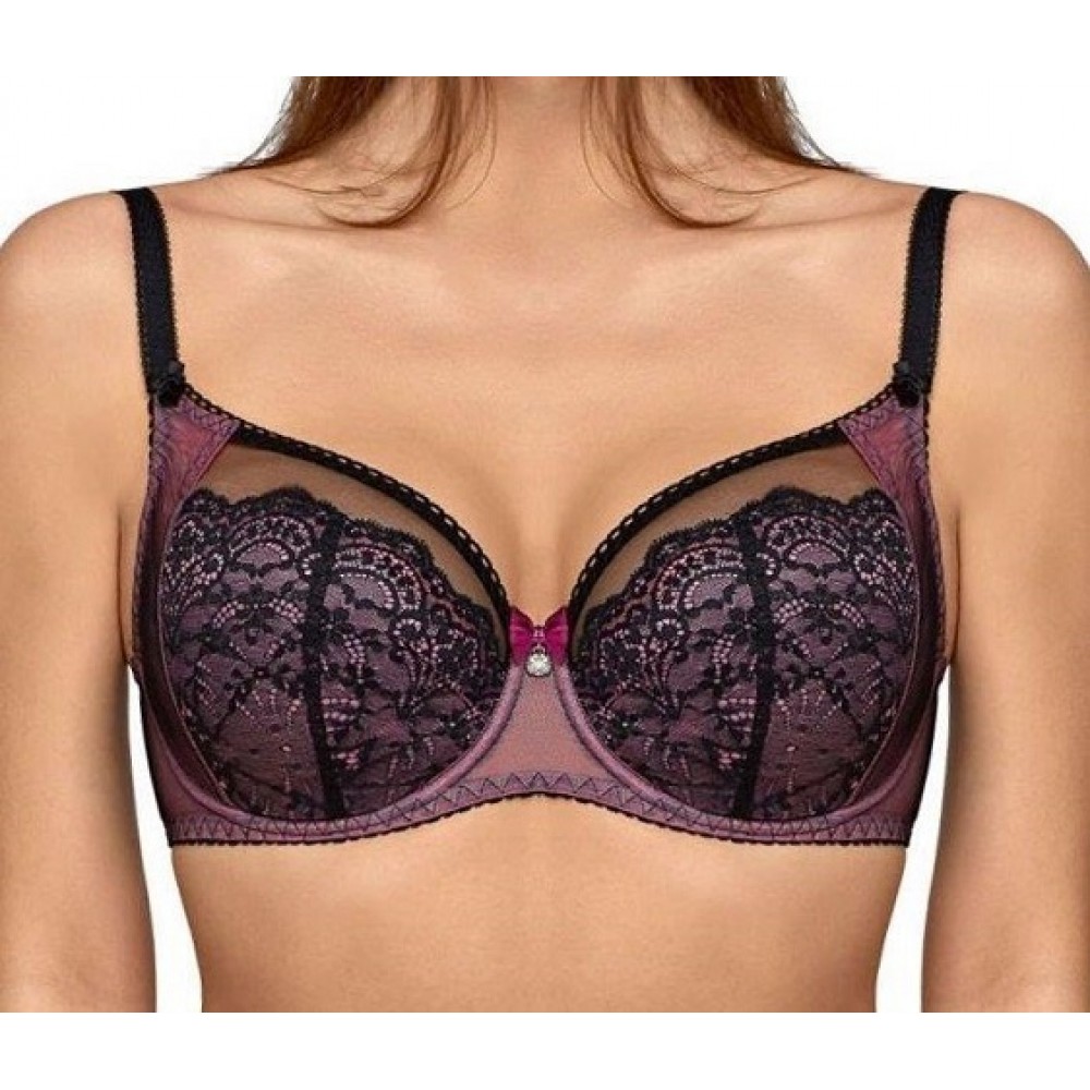 М'який жіночий бюстгальтер на кісточках з тюлевої сітки та мережива. На підкладці з фіолетового трик..