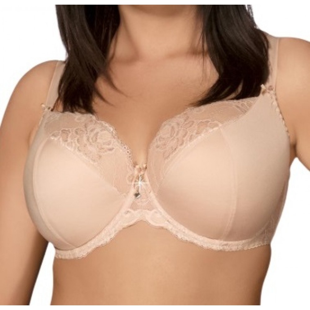 Жіночний бюстгальтер пудрового кольору - чашечки з гладкої тканини - чашечки і перемичка покриті кра..