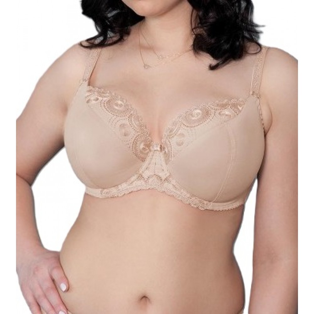 Бюстгальтер з підкладкою. Виготовлена з тканини бежевого кольору, покрита тонким тюлем кольору екр..
