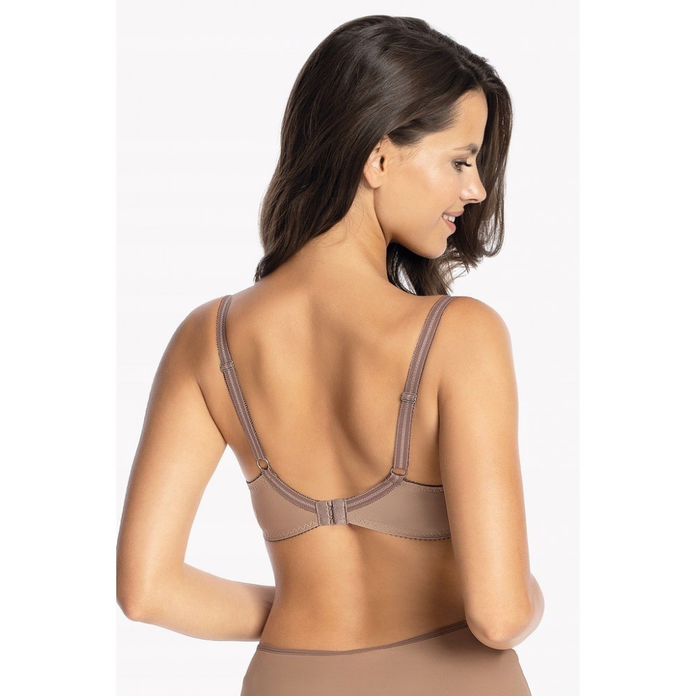 Напівм'який бюстгальтер на кісточках з ефектного мережива та сітки. Квіткова вишивка зверху, чашечки..