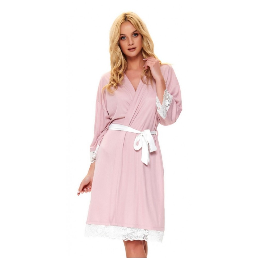 Елегантний жіночий халат з м'якої віскози, короткі мереживні рукави, зав'язані на талії, кишені на р..