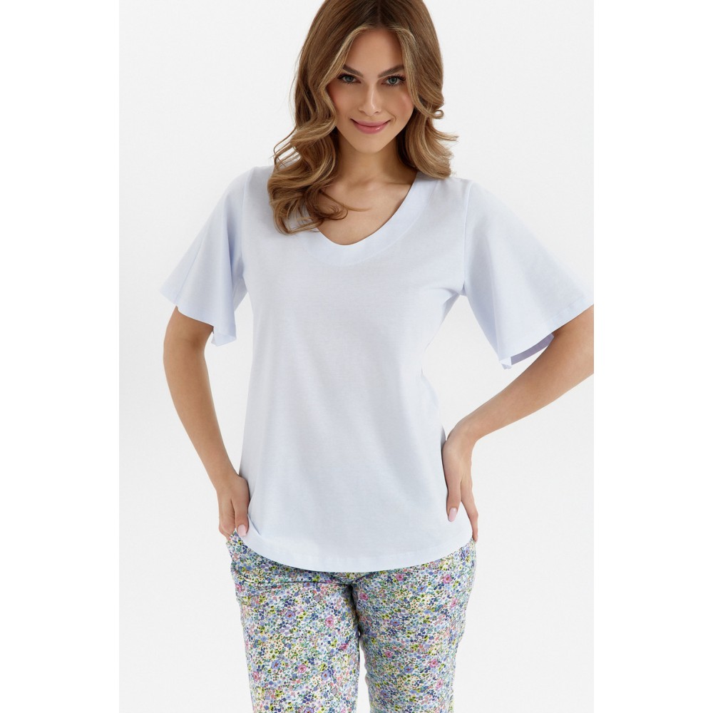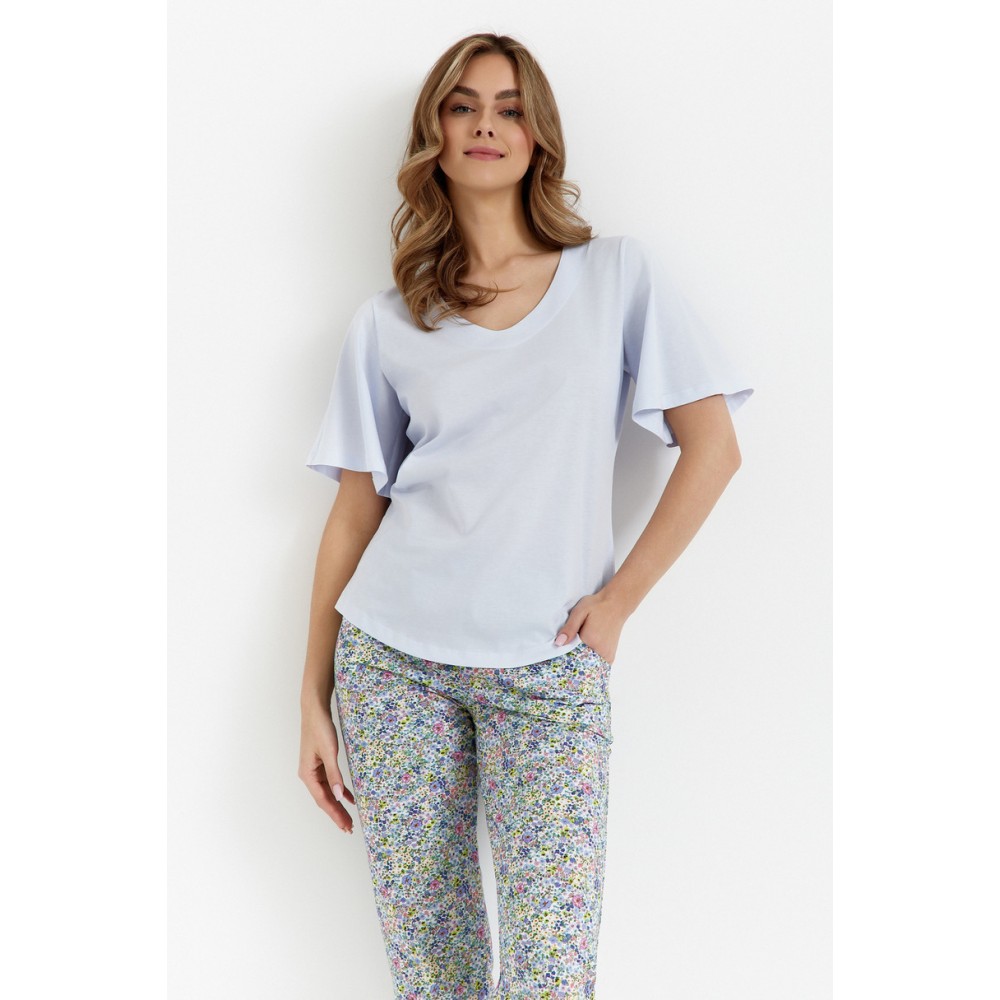 Ця модель має короткі рукави та штани довжиною 7/8, що робить її ідеальним вибором як для теплих вечорів, так і для зручного домашнього одягу. Практичні кишені додають функціональності, дозволяючи зберігати дрібні речі. Витончений, жіночний дизайн робить піжаму стильною, забезпечуючи максимальний комфорт.