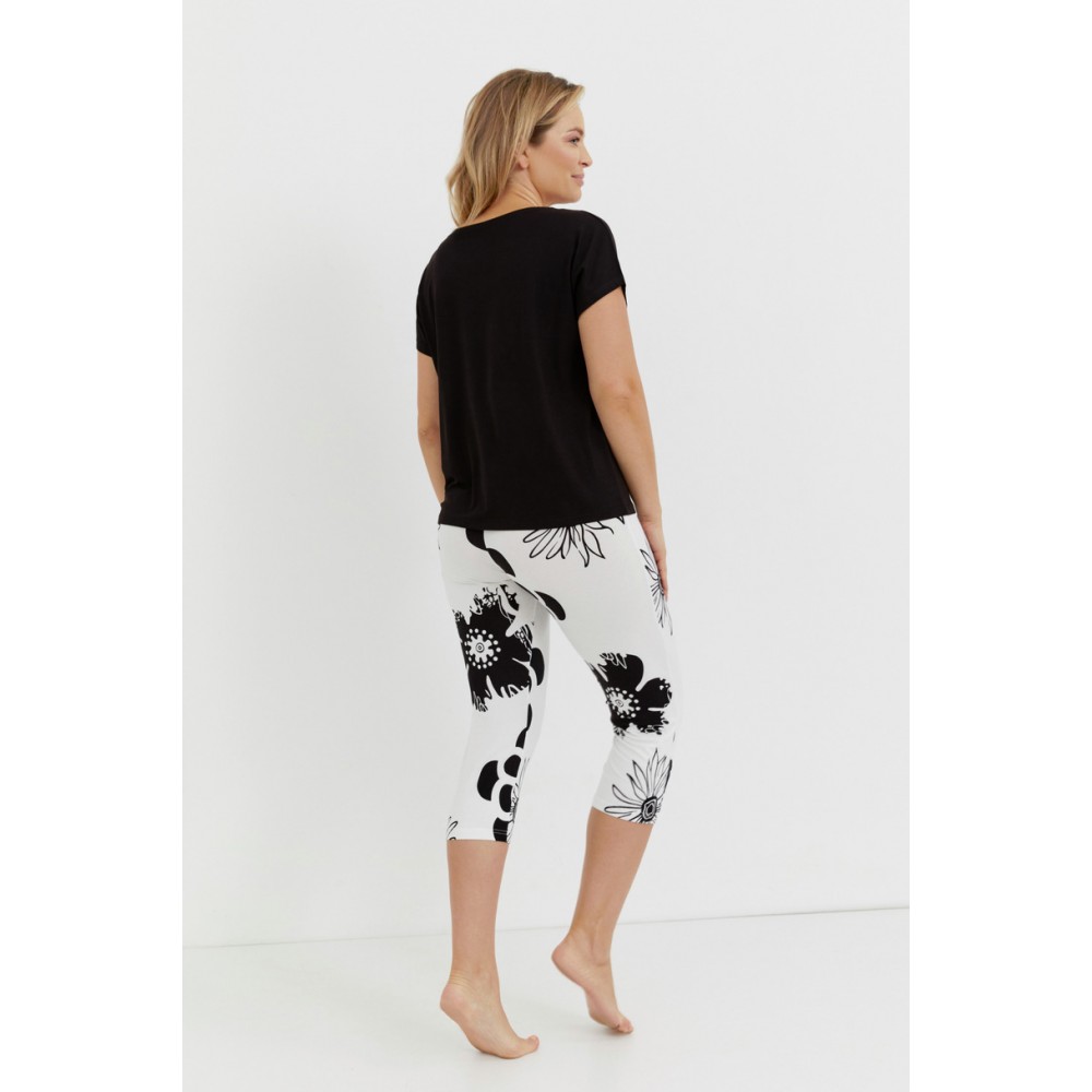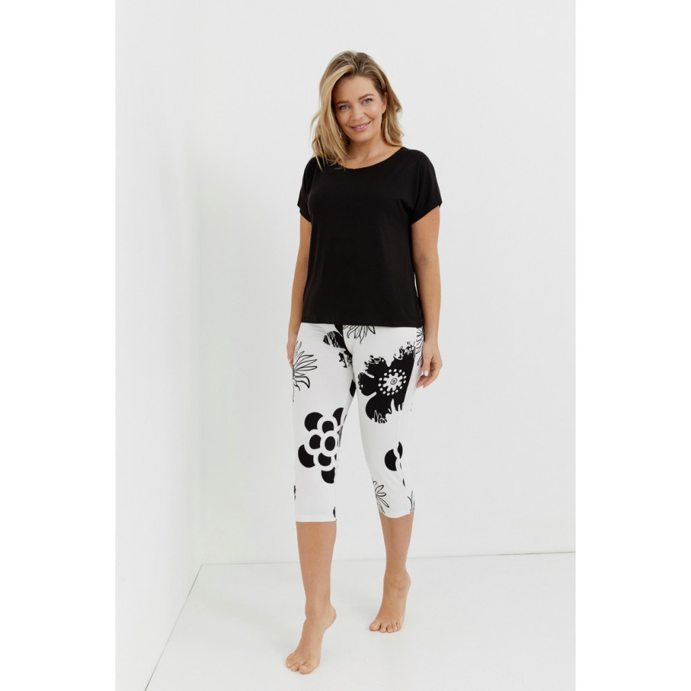 Жіноча піжама з короткими рукавами з високоякісної віскози. Круглий виріз горловини. У комплекті капрі.