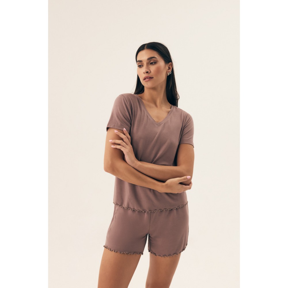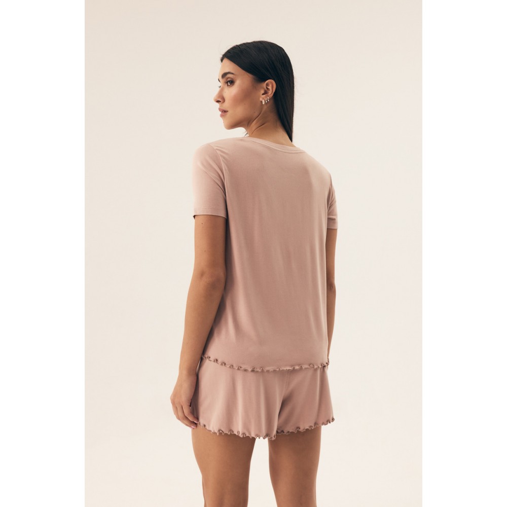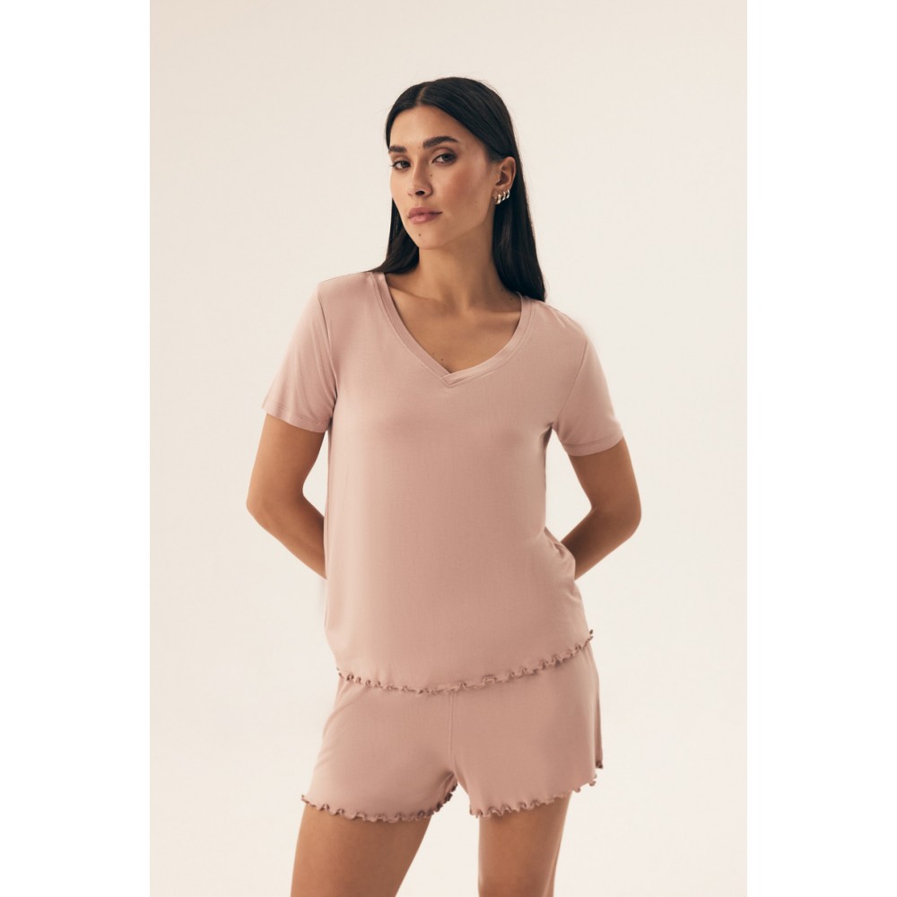 Жіноча піжама NOVES 42679 SS25 – це втілення комфорту та ніжної жіночності. Виготовлена з м’якої, приємної для шкіри віскози з додаванням еластану, вона ідеально підходить для теплих вечорів. Короткі рукави забезпечують повітропроникність та легкий комфорт, а еластична тканина гарантує свободу рухів та ідеальну посадку. Класичний, але водночас сучасний дизайн робить цей виріб не просто піжамою, а стильним доповненням до вашого домашнього гардеробу. Ідеально підходить для жінок, які цінують функціональність у поєднанні з витонченим шармом.