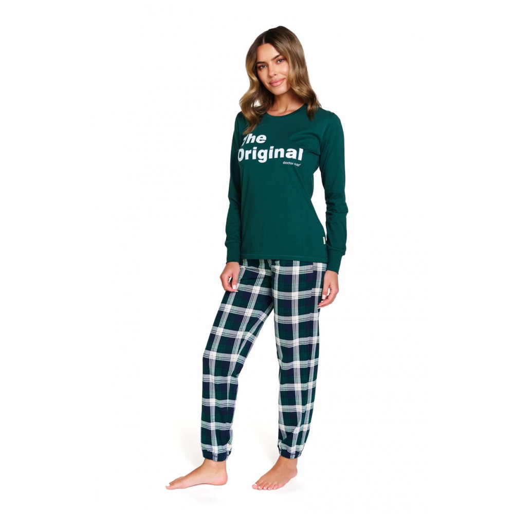 Жіночий піжамний комплект PM.7340 J/25 від Doctor Nap – це класичний комплект для сну з сучасним акцентом, ідеальний для прохолодних вечорів та відпочинку вдома. Верхній одяг – це блузка з довгими рукавами, прикрашена модним принтом спереду , що надає їй унікального характеру.