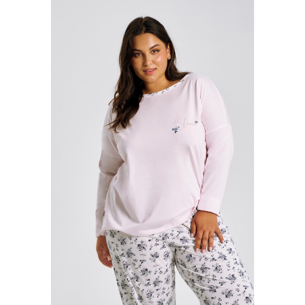 Жіночий піжамний комплект ELLA 3465 від TARO – це класичний комплект із двох предметів, ідеальний для жінок, які цінують натуральні тканини та комфортний сон. Виготовлений зі 100% високоякісної бавовни, він забезпечує м'якість, повітропроникність та комфорт протягом усієї ночі. Верхня частина піжами доповнена блузкою з довгими рукавами, прикрашеною ніжним квітковим візерунком та круглим вирізом з суцільною окантовкою. Довгі однотонні штани прямого крою мають еластичний пояс, що забезпечує повну свободу рухів та ідеальну посадку. Чудовий вибір для жінок великих розмірів у розмірах 2XL–3XL.
