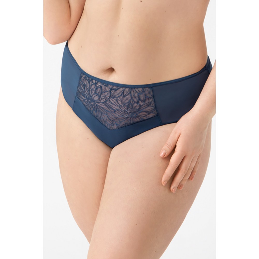 Повні труси, виготовлені з тонкої мікрофібри. Спереду прикрашена вставкою з прозорого фатину і пліси..