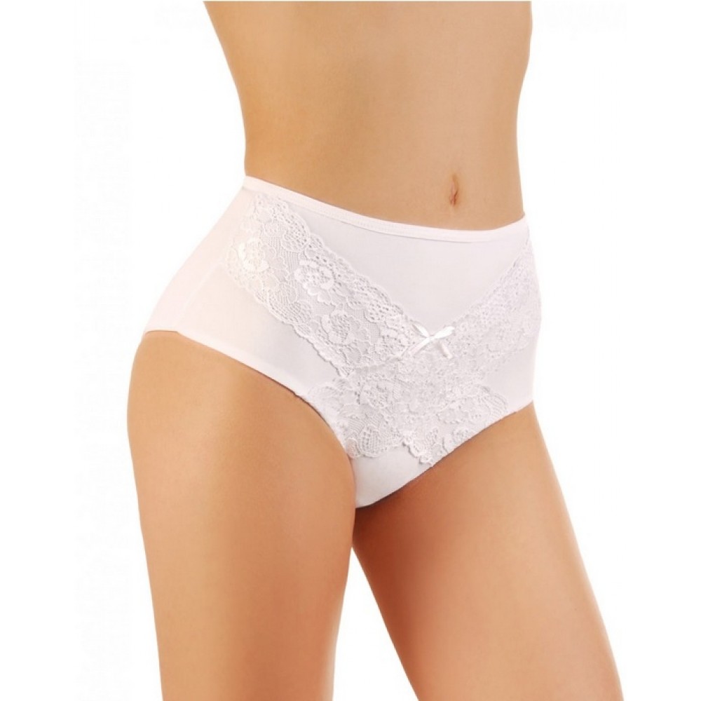 Жіночі труси з високою посадкою, виготовлені з високоякісної бавовни, приталені на стегнах. Передня частина оздоблена ефектним мереживом та атласним бантом, а задня частина гладка. Склад: 95% бавовна, 5% еластан.