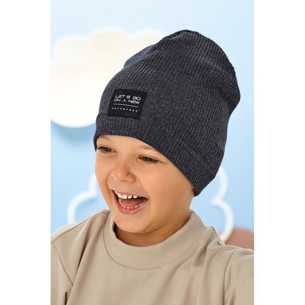 Хлопчача шапочка з одного шару тонкої ребристої бавовни з невеликою латкою.