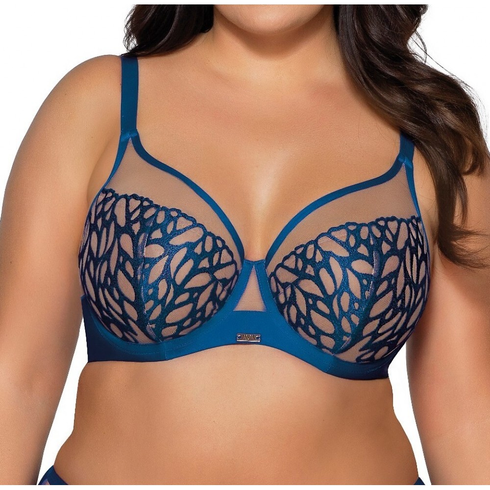 Цей бюстгальтер має напівпідкладені чашечки з сітки та мережива, підкладку з бежевою бавовни. Бретел..