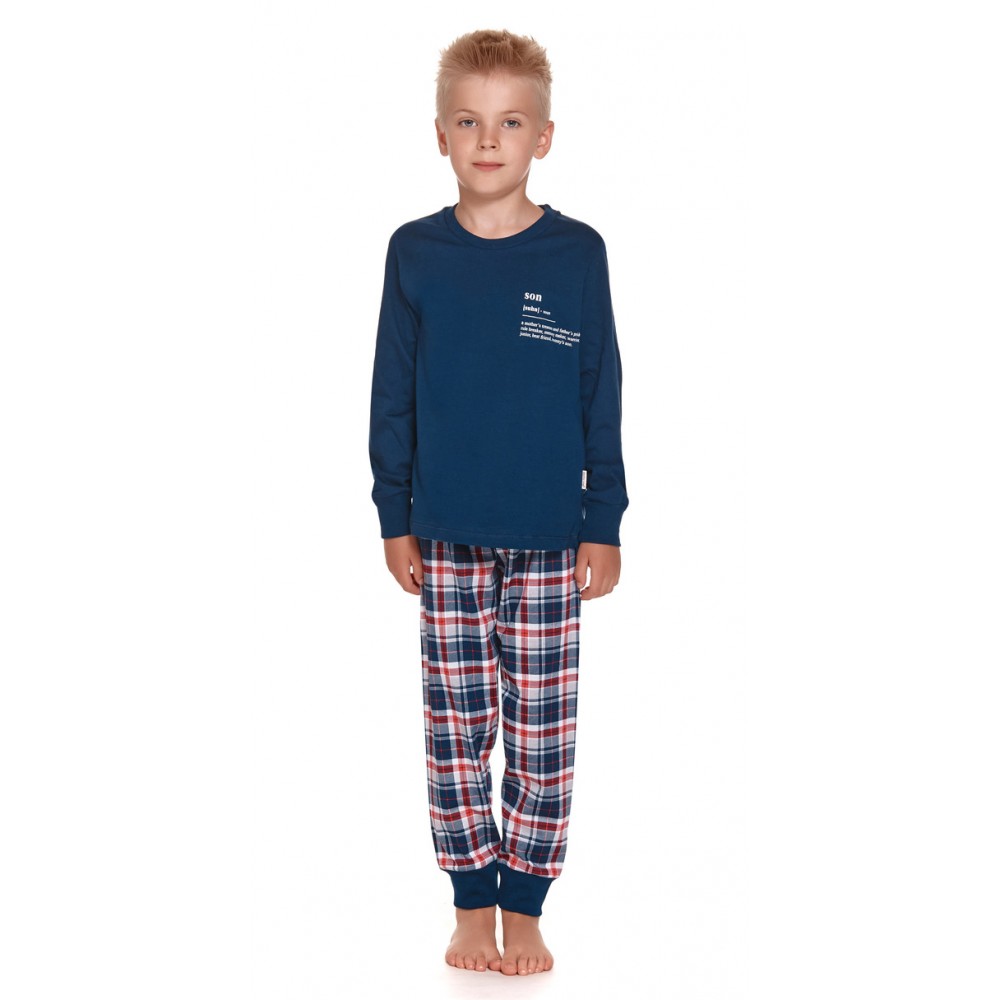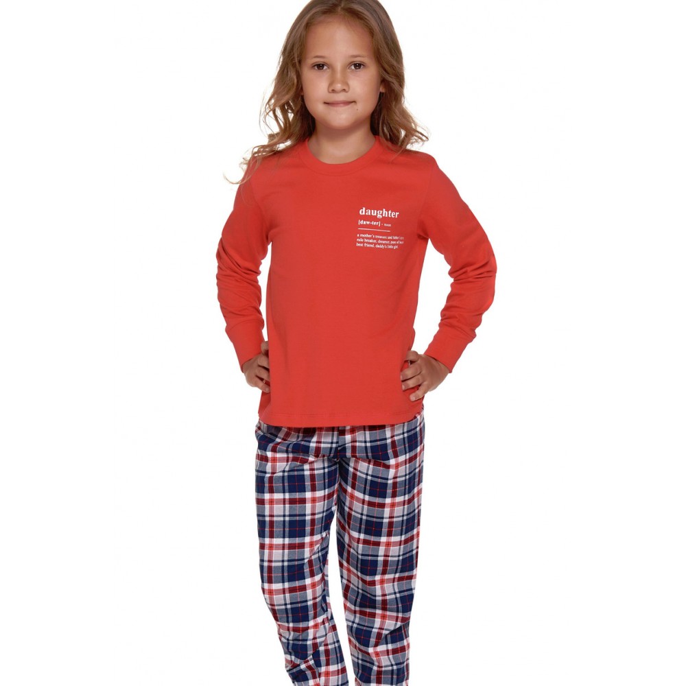 Дитяча піжама з високоякісної м'якої бавовни. Футболка з довгими рукавами має ніжний принт на грудях. Комплект включає довгі картаті штани. Горловина, манжети та низ оздоблені зручною ребристою стрічкою.