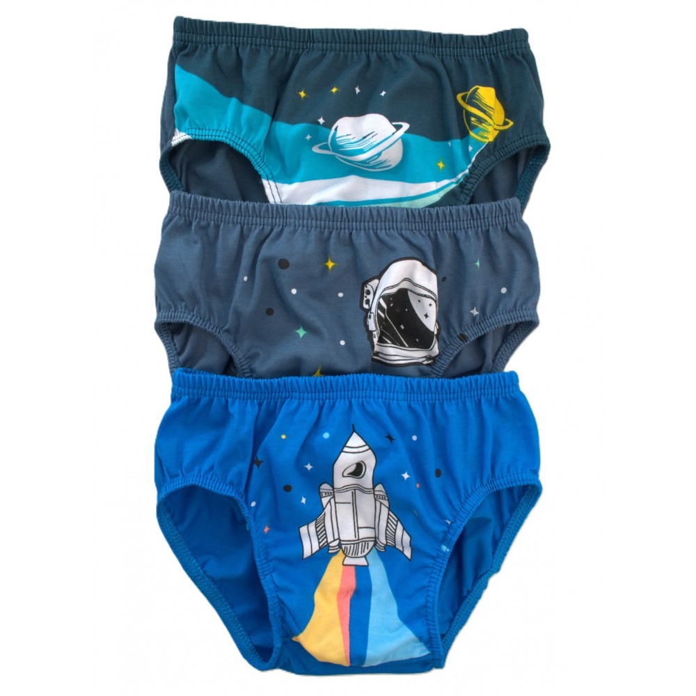 Дитячі труси з яскравим принтом. Виготовлені з м'якої 100% бавовни. Доступні в упаковках по три штуки в широкій кольоровій гамі.