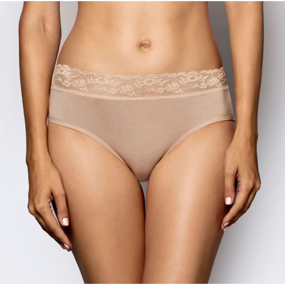 Класичні жіночі труси з високою талією. Гарна мереживна обробка на талії. Склад: 95% бавовна, 5% еластан. У комплекті 2 труси (одного кольору).