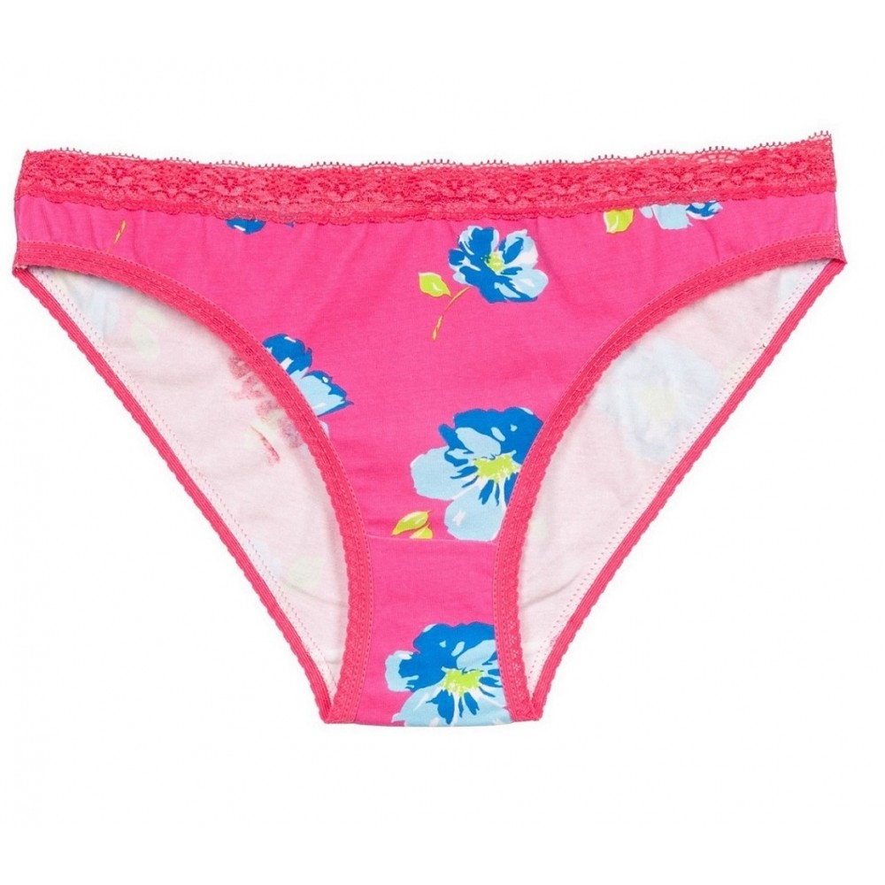 • Жіночі труси спортивного крою з високоякісної м'якої бавовни з 5% еластану з квітковим візерунком та мереживною обробкою..
