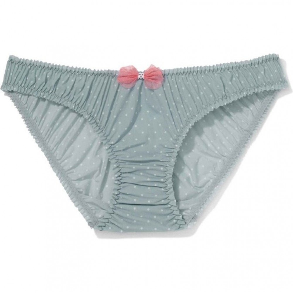 • Жіночі міні-бікіні трусики з ніжної, легкої тканини з візерунком у горошок. Декоративно зібрані краї. Бант спереду. 80% ..