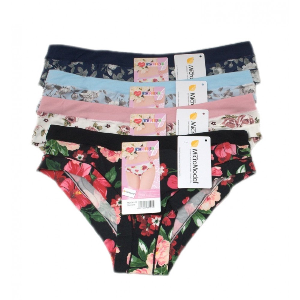 Жіночі труси з ніжного мікромодалу. Упаковані в мікс візерунків та кольорів, 12 штук в упаковці. Різні розміри (S, M, L, XL). Склад: 94% мікромодал, 6% еластан.