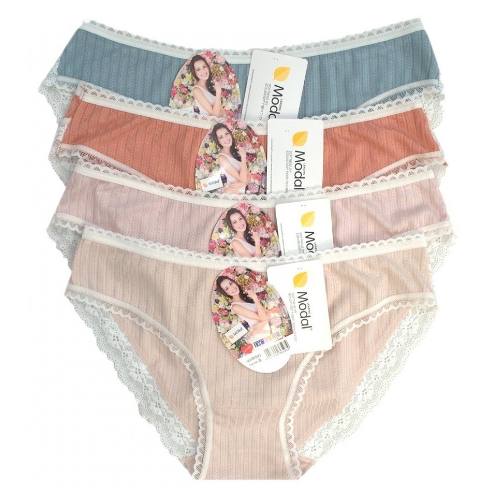 Жіночі труси з м'якого модалу. Ідеально прилягають до тіла. 12 штук в упаковці. Різні розміри (S, M, L, XL). Склад: 94% модал, 4% еластан.