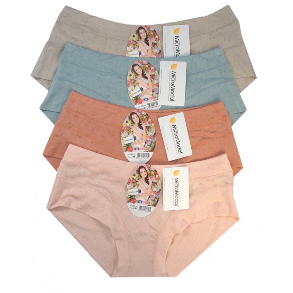 Жіночі труси з м'якого мікромодалу. Ідеально прилягають до тіла. 12 штук в упаковці. Різні розміри в упаковці (S, M, L, XL). Склад: 89,5% мікромодал, 10,5% еластан.