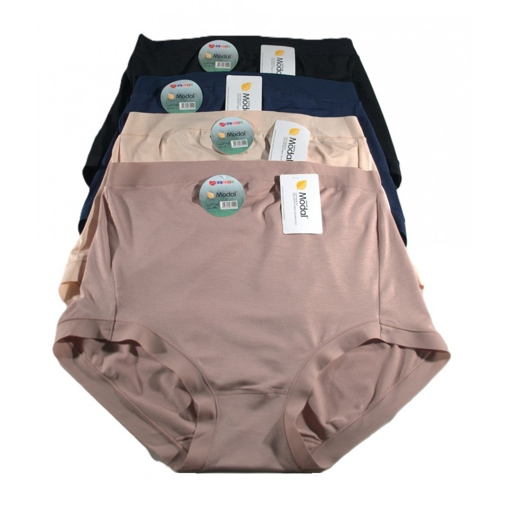 Жіночі труси з ніжного модалу. Упаковані в мікс кольорів, 12 штук. Доступні в різних розмірах (L, XL, 2XL). Склад: 94% модал, 6% еластан.