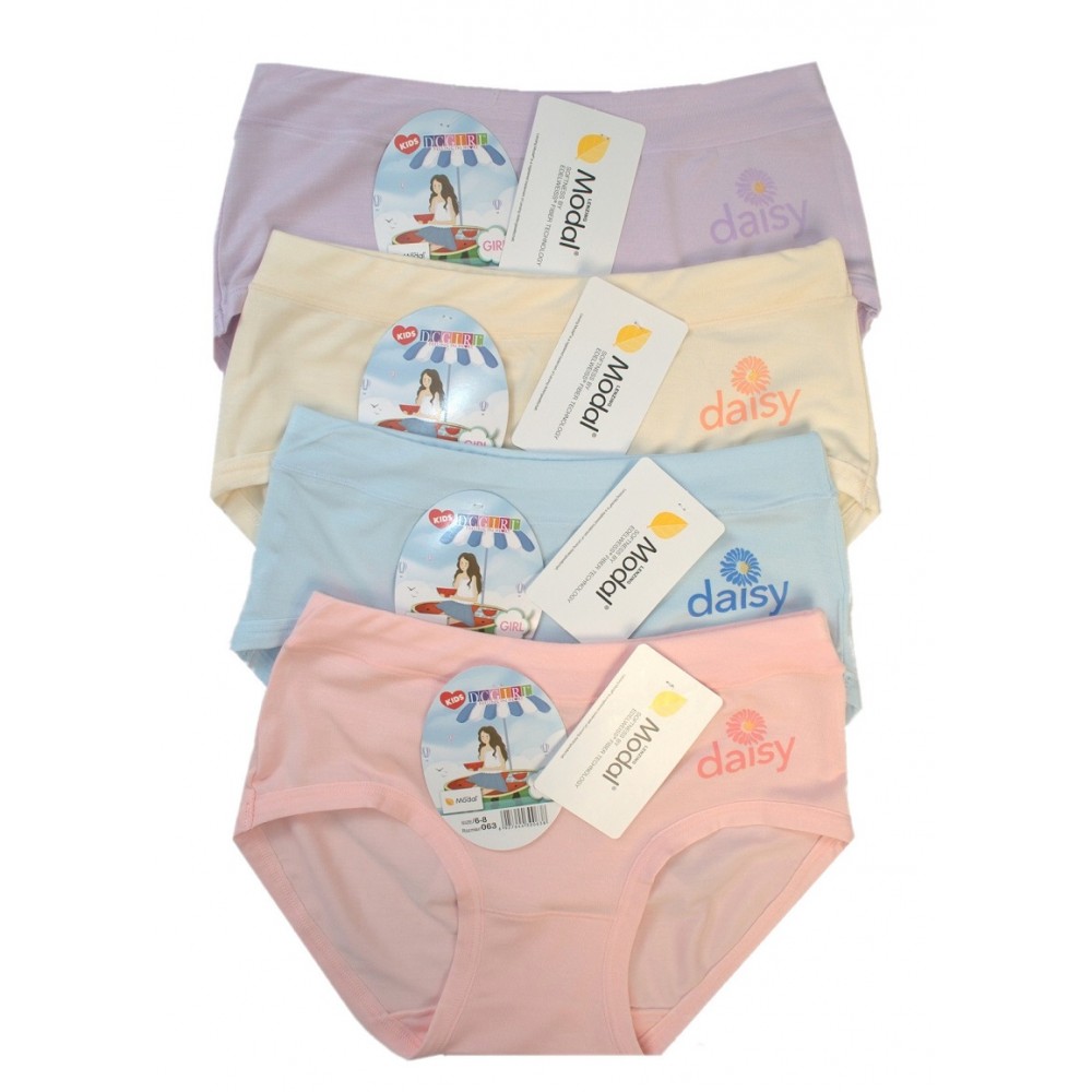 Трусики для дівчаток, гладенькі, пастельних кольорів. Високоякісний, дуже м'який та приємний на дотик матеріал. Упаковка з 12 штук, різні візерунки та розміри (6-8, 8-10, 10-12, 12-14). Склад: 94% модал, 6% еластан.