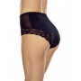 Елегантні трусики з високою талією та подвійним шаром тканини спереду, який ніжно формує та розгладжує живіт. Задня частина та низ штанин оздоблені м'яким, плоским мереживом, непомітним під одягом. Склад: 80% поліамід, 20% еластан