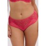 Model łączy wygodę z kobiecym, eleganckim wyglądem. Figi pełne, wykonane z elastycznej koronki oraz tiulu, całość wykończona elastyczną taśmą w pasie oraz przy nogawkach. Skład: 50% Poliamid, 30% Poliester, 10% Elastan, 10% Bawełna.