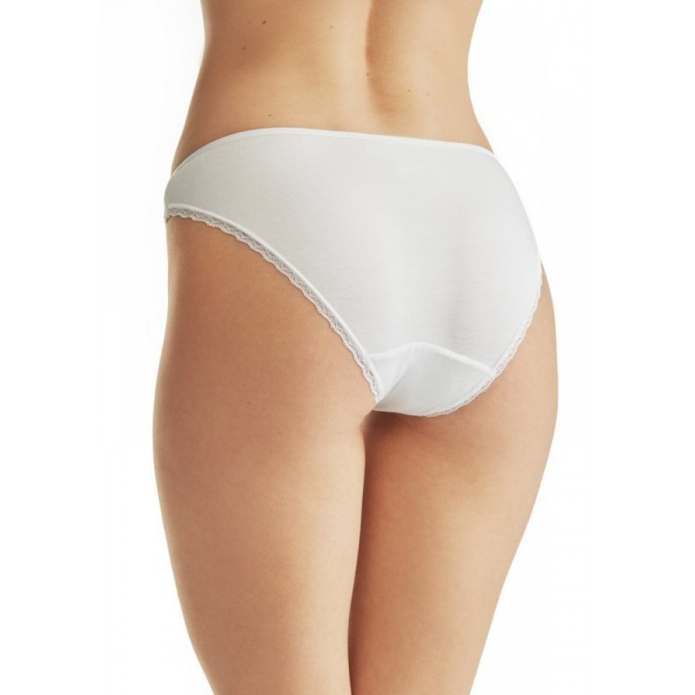 Жіночі труси з низькою посадкою, вузькі в стегнах, оздоблені мереживом. Упаковані в коробку з двох штук. Склад: 95% віскоза, 5% еластан.
