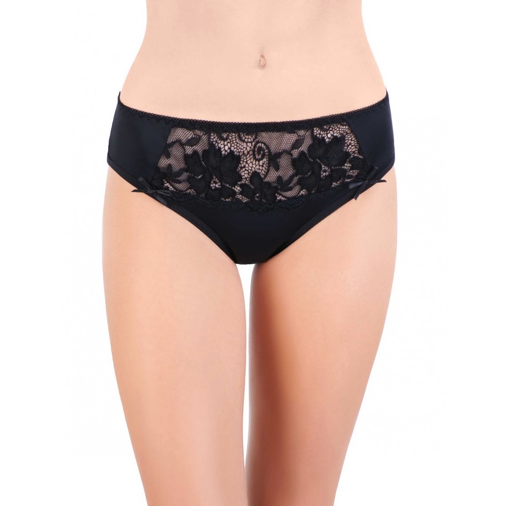 Жіночі трусики з ніжної мікрофібри. Передня частина прикрашена красивою мереживною вставкою та маленькими бантами. Задня частина гладка та однорідна. Матеріал: 85% поліамід, 15% еластан.