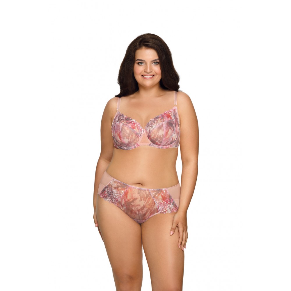 Рожева плюмерія AV 1940 захоплює буйством кольорів. Імпресіоністичний візерунок, що покриває чашечки, виготовлений з поєднання стабільного тюлю та ніжної вишивки, викликає образи райських квітів. Вертикальні розрізи чашечок разом із бічною вставкою ідеально формують груди, створюючи неймовірно привабливий ефект. Гумка та бретельки, що підбираються за розміром бюстгальтера, тримають бюстгальтер на місці, ідеально облягаючи тіло.
