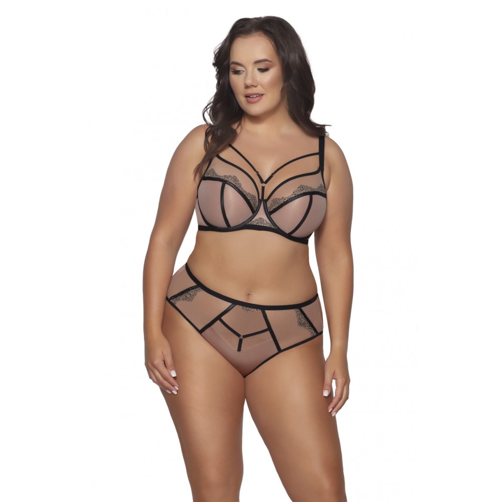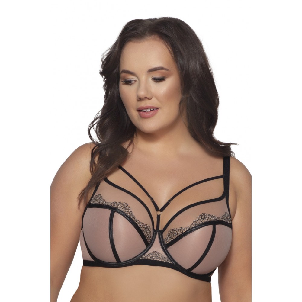 Biustonosz AV 2092 to kwintesencja elegancji połączonej z wyrazistym, zmysłowym designem. Ten miękki model "soft" doskonale okala i podtrzymuje piersi, nadając im pełen, naturalny kształt i pięknie eksponując dekolt. Nietuzinkowe połączenie cielistego tiulu, czarnych lamówek oraz haftu pokrytego modnym zwierzęcym printem tworzy kompozycję, która przyciąga wzrok. Zadziorne paseczki biegnące od mostka do ramiączek dodają modelowi wyjątkowego charakteru, podkreślając kobiecą sylwetkę i dodając pewności siebie. Biustonosz AV 2092 to idealny wybór dla kobiet szukających czegoś wyjątkowego na co dzień i na specjalne okazje.
