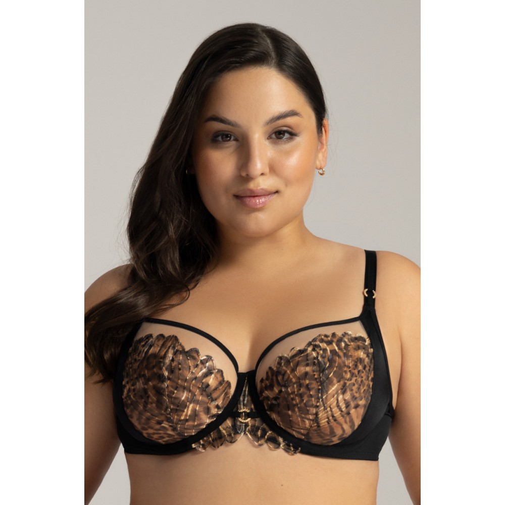 Бюстгальтер AV 2144 LIANA SOFT SIDE SUPPORT – це квінтесенція жіночої чарівності в чуттєвій формі. Дизайн з боковими вставками забезпечує виняткову підтримку, збираючи груди разом і ніжно піднімаючи їх. М'які чашечки, виготовлені з чорного трикотажу, нюдового фатину та вишивки в цятку, ідеально формують груди. Декоративний місток з тонким золотим елементом і бретельки додають легкості та елегантності, створюючи чуттєвий, але водночас підтримуючий дизайн. Білизна AV 2144 – це ідеальне поєднання комфорту та чуттєвості.