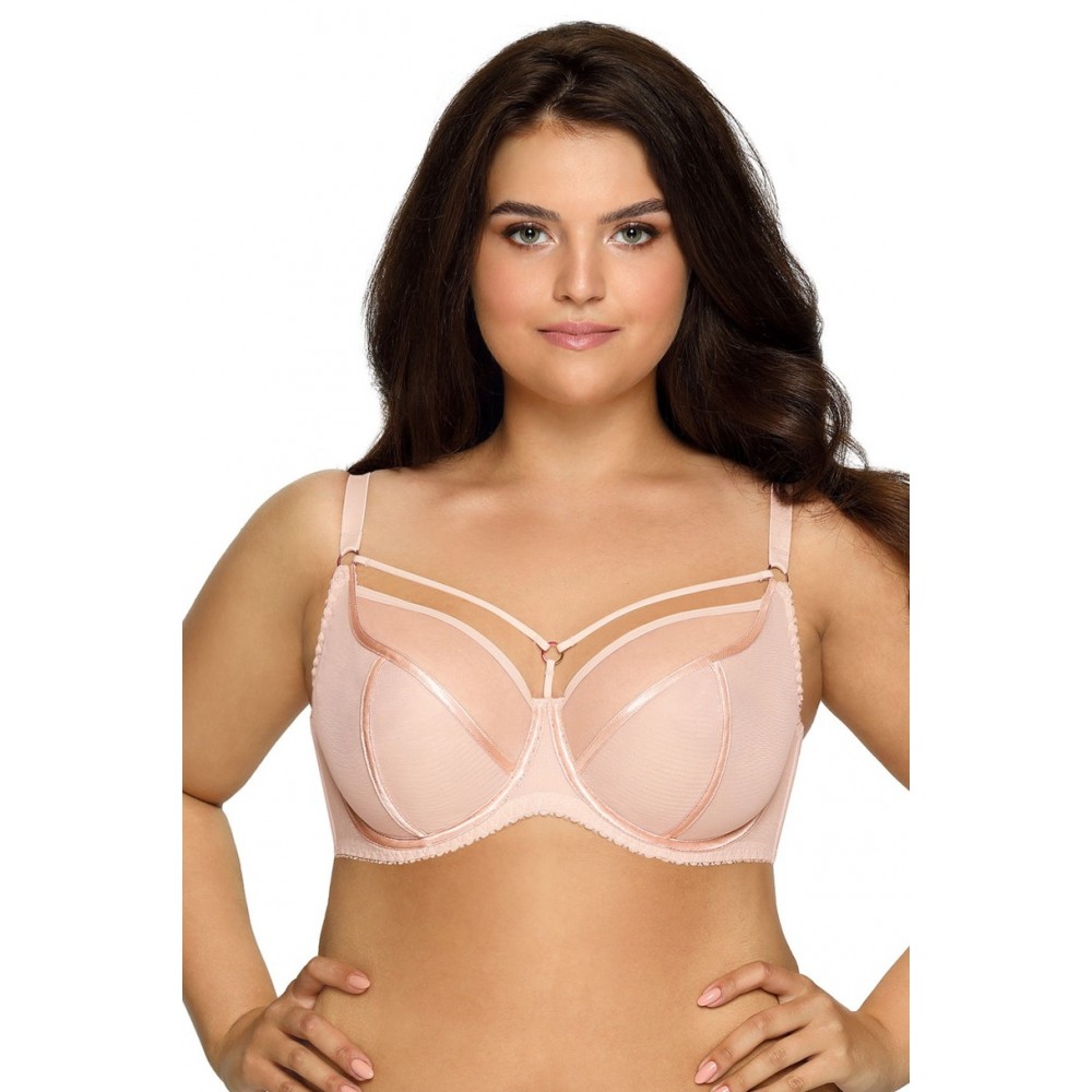 Класичний бюстгальтер надійної конструкції – це обов'язкова річ у гардеробі будь-якої жінки. Ніжний бюстгальтер Protea – це така незамінна річ, доповнена ноткою вишуканості. М'які чашечки з фатину теплого бежевого відтінку, підкладені нюдовим маркізетом у нижній частині, надійно підтримують груди, створюючи природну округлу форму. Атласні стрічки з триколірною строчкою облягають і перетинають чашечки, а ніжні бретельки, підвішені між металевими кільцями, підкреслюють декольте.
