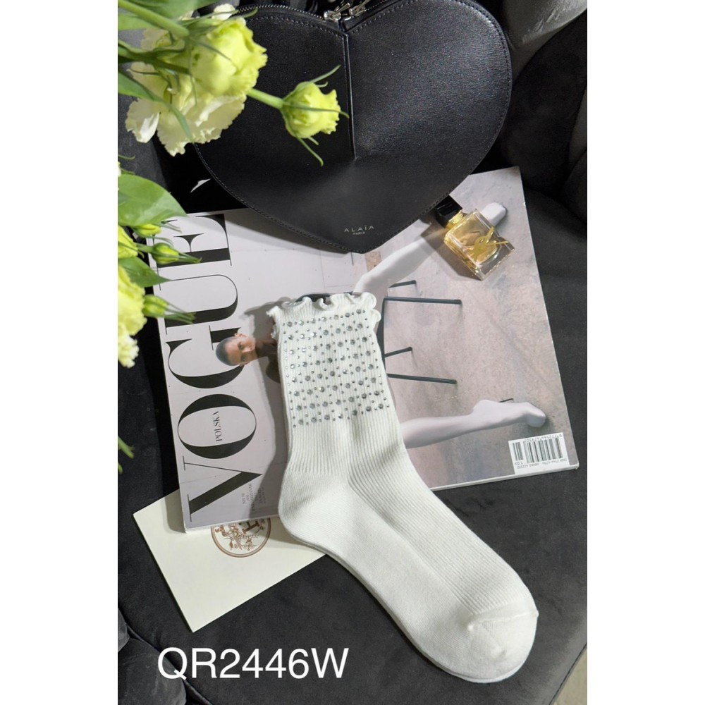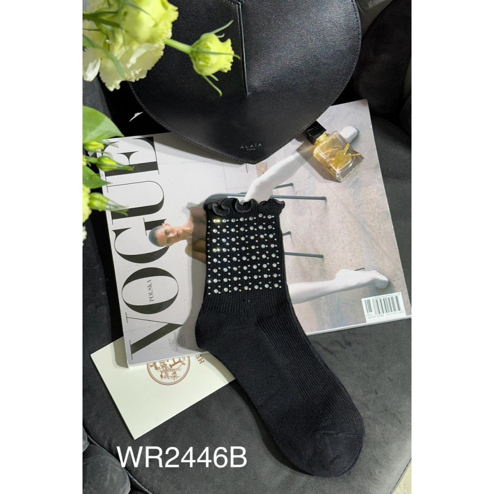 Ці жіночі шкарпетки з дрібною ребристою бавовною – це стильний та зручний вибір, ідеальний для будь-якої нагоди. Виготовлені з м’якої бавовни, вони забезпечують комфорт і тепло, що робить їх ідеальними для щоденного носіння. Вони прикрашені срібними стразами різних розмірів, що додають блиску та оригінальності. Ці блискучі акценти доповнюють ребристий візерунок, надаючи шкарпеткам елегантного та сучасного вигляду. Завдяки своїй універсальності вони легко поєднуються з різноманітним одягом, як повсякденним, так і більш елегантним. Вони ідеально підходять для жінок, які хочуть додати нотку унікальності до свого гардеробу.