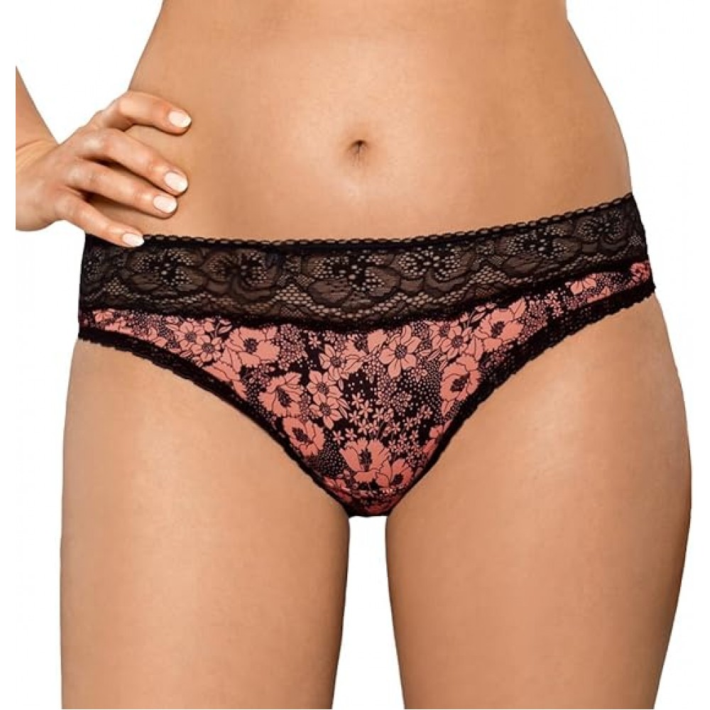 Жіночі трусики повністю з трикотажного полотна з кольоровим узором. Верх отделан чувственным кружевом, ножки отделаны каучуковым Crusaders. Основа: 91% поліамід, 5% бавовна, 4% еластан.