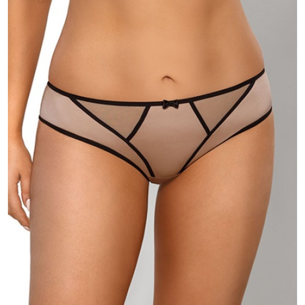 Елегантні труби з багатостулкових тканин. Повністю підкладений і гладкий, прикрашений чорним окканто. Вставки з легкого тюля спереди, атласный бантик зверху. Основа: 91% поліамід, 5% бавовна, 4% еластан.