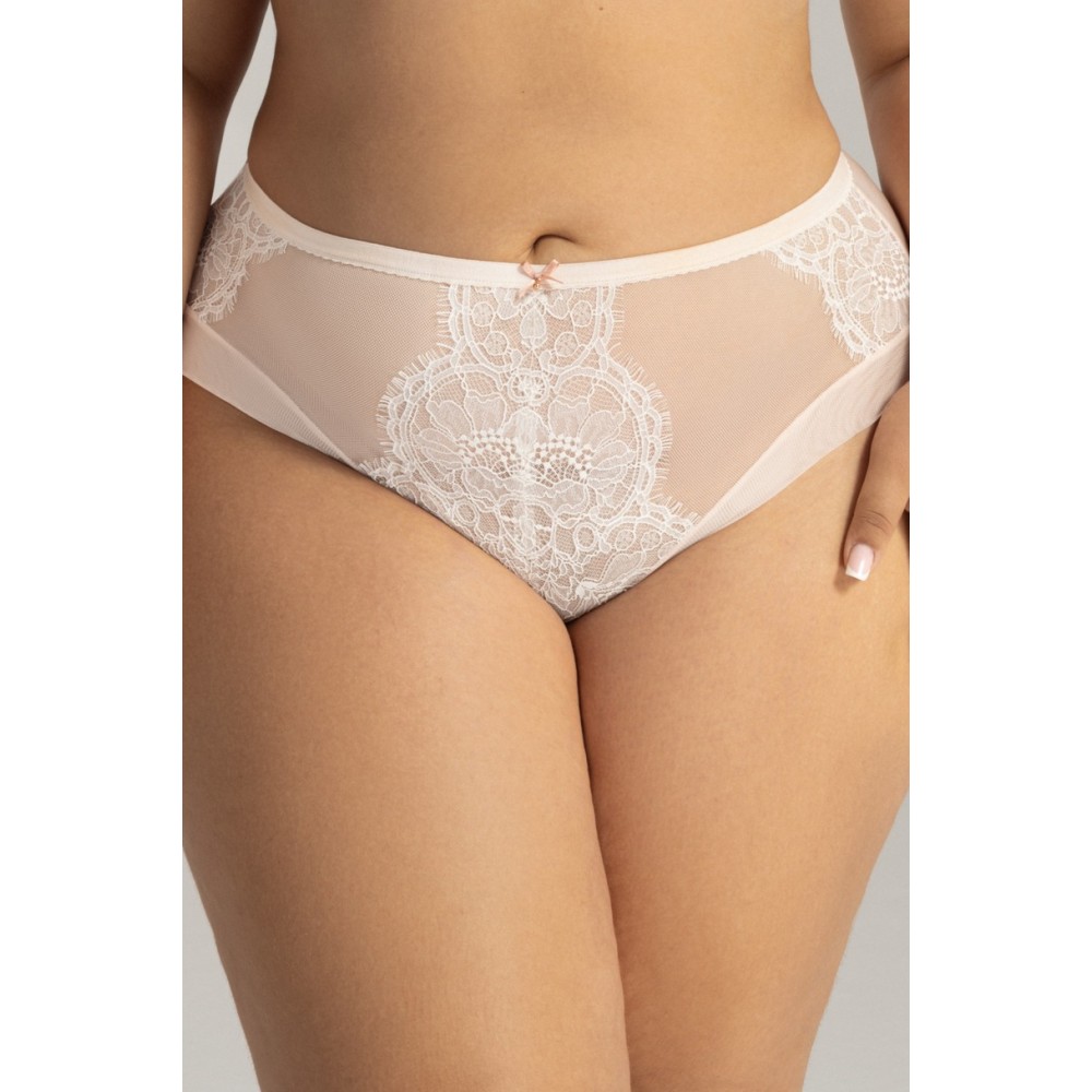 Труси-бразиліана, спереду прикрашені вишивкою, спинка з мікрофібри та тюлю. Склад матеріалу: 91% поліамід, 5% бавовна, 4% еластан.
