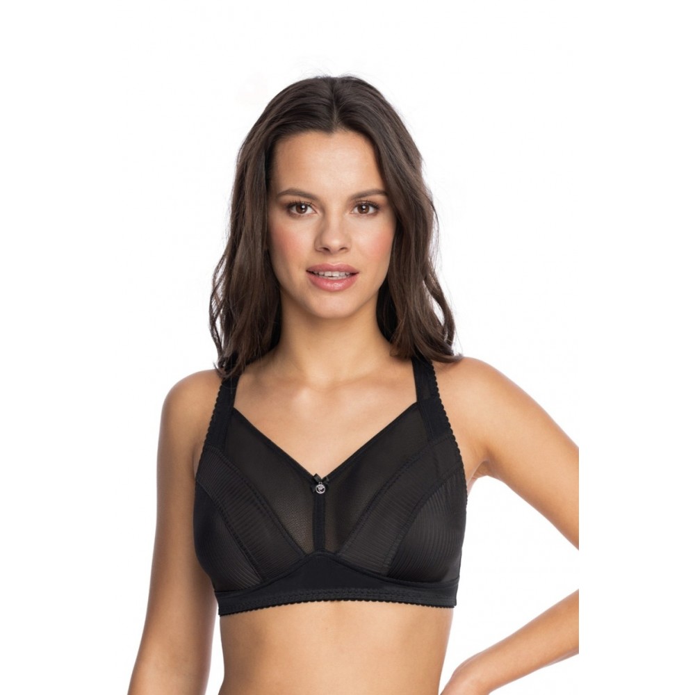 Цей бюстгальтер повністю без кісточок та підкладок. Злегка піднятий виріз горловини забезпечує кращу підтримку. Бічні кісточки запобігають скочуванню матеріалу та покращують стабільність пояса. Спинка має виріз та виготовлена з щільної еластичної тканини. Цей стиль ідеально поєднує елегантність та комфорт.
