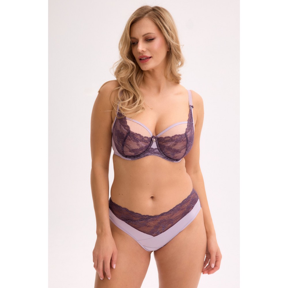 Бюстгальтер SOFT GISELLE, арт. 1311, розроблений для жінок, які шукають комфорт, легкість та чудову підтримку. Виготовлена з ніжної, прозорої сітки та тонкого мережива у фіолетових відтінках, ця модель додає жіночності та стилю. Бічні кісточки забезпечують стабільність та запобігають скочуванню, рівномірно розподіляючи вагу по грудях. Контурні чашечки з дротяним каркасом ідеально обрамляють груди, а низька перенісся ідеально підходить для глибокого декольте. Бюстгальтер плавно та природно сидить на тілі, пропонуючи елегантний образ як для щоденного носіння, так і для особливих випадків.