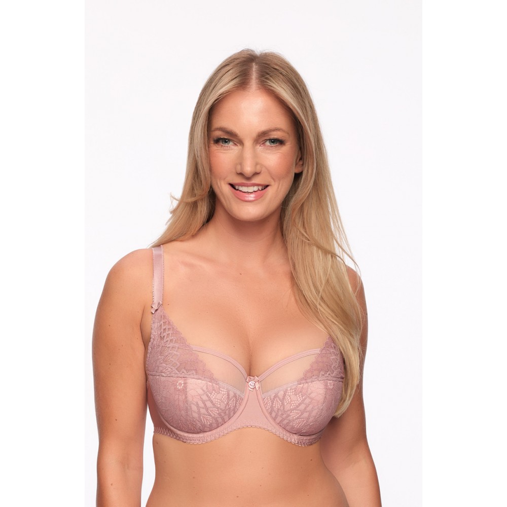 Бюстгальтер Freja 1289 – це напівм’яка модель з напівпідкладкою, яка поєднує сучасну елегантність з максимальним комфортом. Виготовлений з ніжного мережива з ледь помітним геометричним візерунком, він ідеально підкреслює жіночний силует. Верхня чашечка виготовлена з ніжного фатину, обробленого стрічкою, а подовжена частина – з еластичного мережива. Нижня чашечка з підкладкою обшита еластичним мереживом. Задня частина виготовлена з товстої мікрофібри.