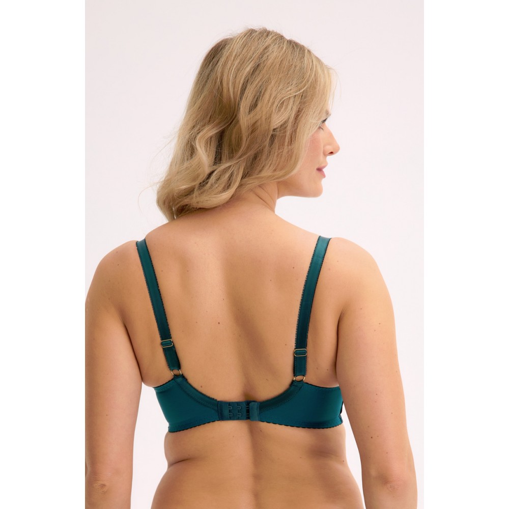 Напівм'який бюстгальтер Keto зеленого кольору – це сучасний варіант для жінок, які шукають поєднання комфорту та стильного дизайну. Його яскравий смарагдовий відтінок та велика квіткова вишивка на ніжній сітці привертають увагу. Чашечки з напівм'якою підкладкою ідеально формують груди, а закриті боки та широка стрічка забезпечують комфорт та підтримку протягом усього дня. Регульовані бретельки та класична застібка ззаду дозволяють персоналізувати посадку. Цей стиль ідеально підходить як для щоденного носіння, так і для особливих випадків – жіночний, елегантний та чуттєвий.
