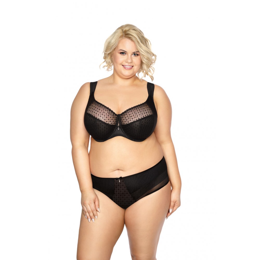 Унікальний дизайн цього бюстгальтера ідеально формує та підтримує груди. Він виготовлений з ніжної вишивки в поєднанні з еластичною тканиною, а бічні панелі та спинка виготовлені з міцної, м'якої трикотажної тканини. Головною перевагою цього виробу є широкі бретельки з піноматеріалу. Він не має бічних кісточок.