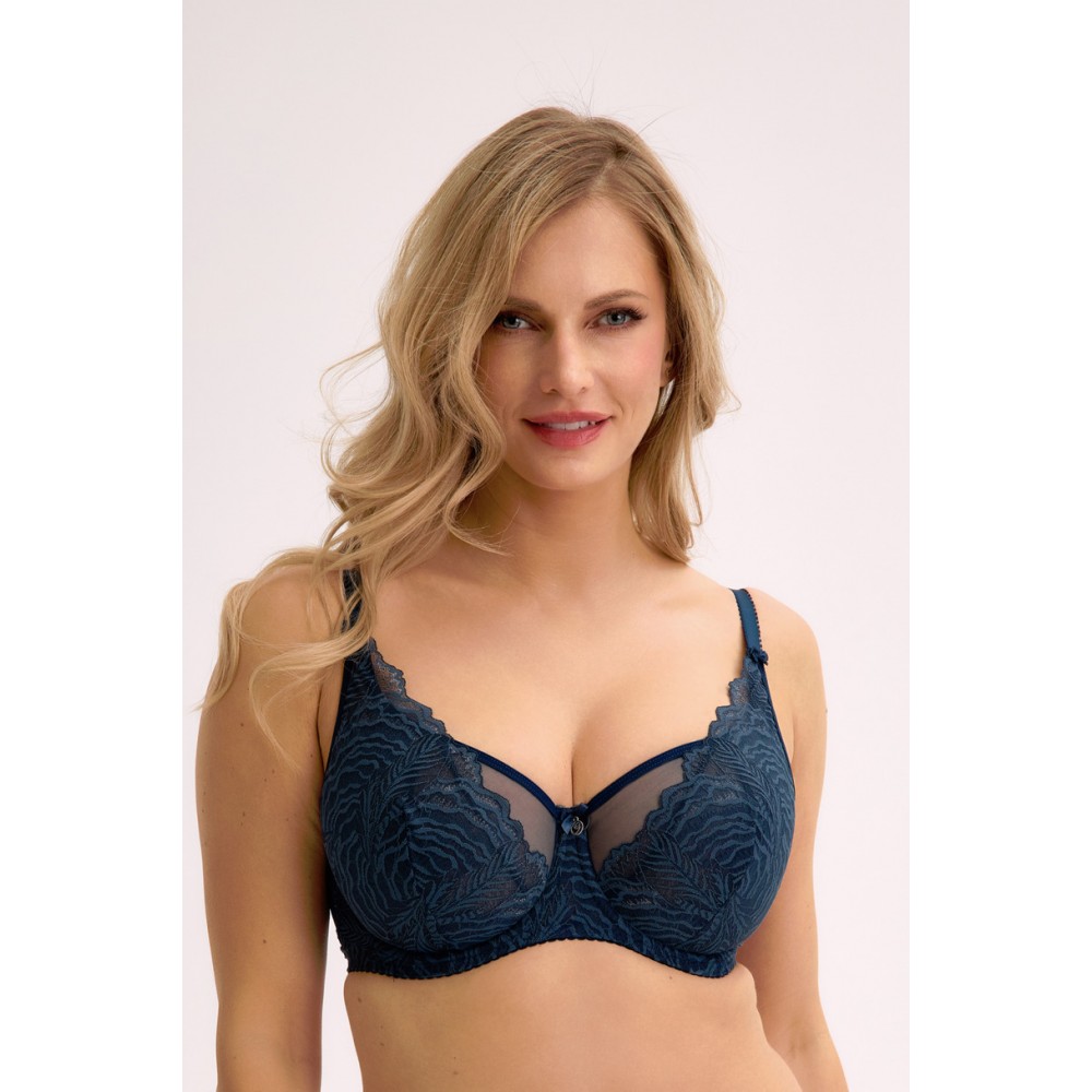 М'який бюстгальтер-балконет Jessia насиченого синього відтінку – ідеальний вибір для жінок, які цінують витончену елегантність та комфорт. Завдяки конструкції SB6 та вертикальному вирізу чашки ця модель чудово піднімає та збільшує груди, створюючи природну, округлу форму. М'які чашечки виготовлені з легкого, міцного фатину та еластичного мережива, що дозволяє бюстгальтеру ідеально адаптуватися до форми грудей та бути майже непомітним на шкірі. Спинка, повністю виготовлена з еластичного фатину, забезпечує комфорт та легкість. Відсутність бічних кісточок та гумка роблять Jessia чудовим вибором як для щоденного носіння, так і для особливих випадків.
