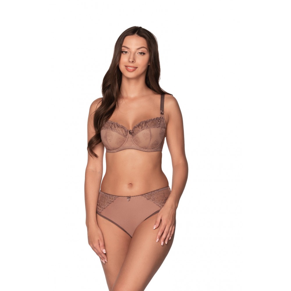 Бюстгальтер, у якому чашечка обтягнута вишитою тканиною. Тасьма виготовлена з еластичної, однорідної мікрофібри. Жорстка частина чашки з'єднана з бретелькою, завдяки чому бюстгальтер ідеально збирає та підкреслює форму грудей.