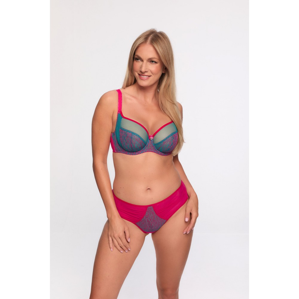 М'який бюстгальтер CINTIA Art. 1294 – це ідеальне поєднання сучасної естетики та класичного комфорту. Він вирізняється унікальним поєднанням кольорів – яскраво-рожевий чудово контрастує з насиченим зеленим та ніжним мереживним візерунком. Прозорі верхні чашечки додають легкості та жіночного шарму.