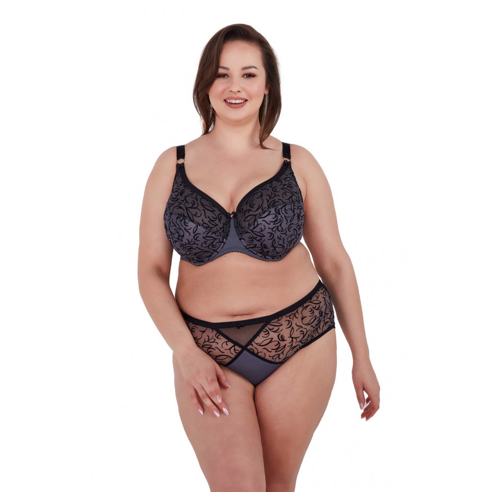 Бюстгальтер з напівпідкладкою та повними чашечками з флокованої сітки. Мікрофіброва стрічка, без бічних кісточок.