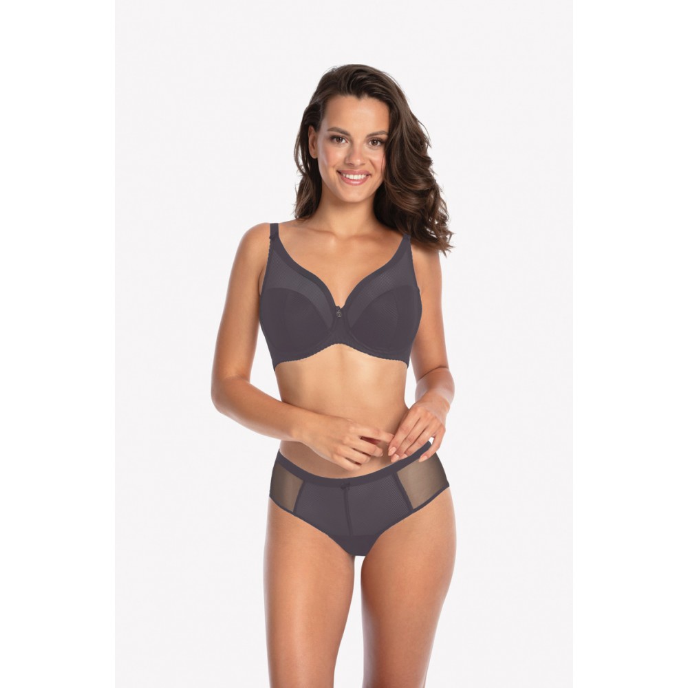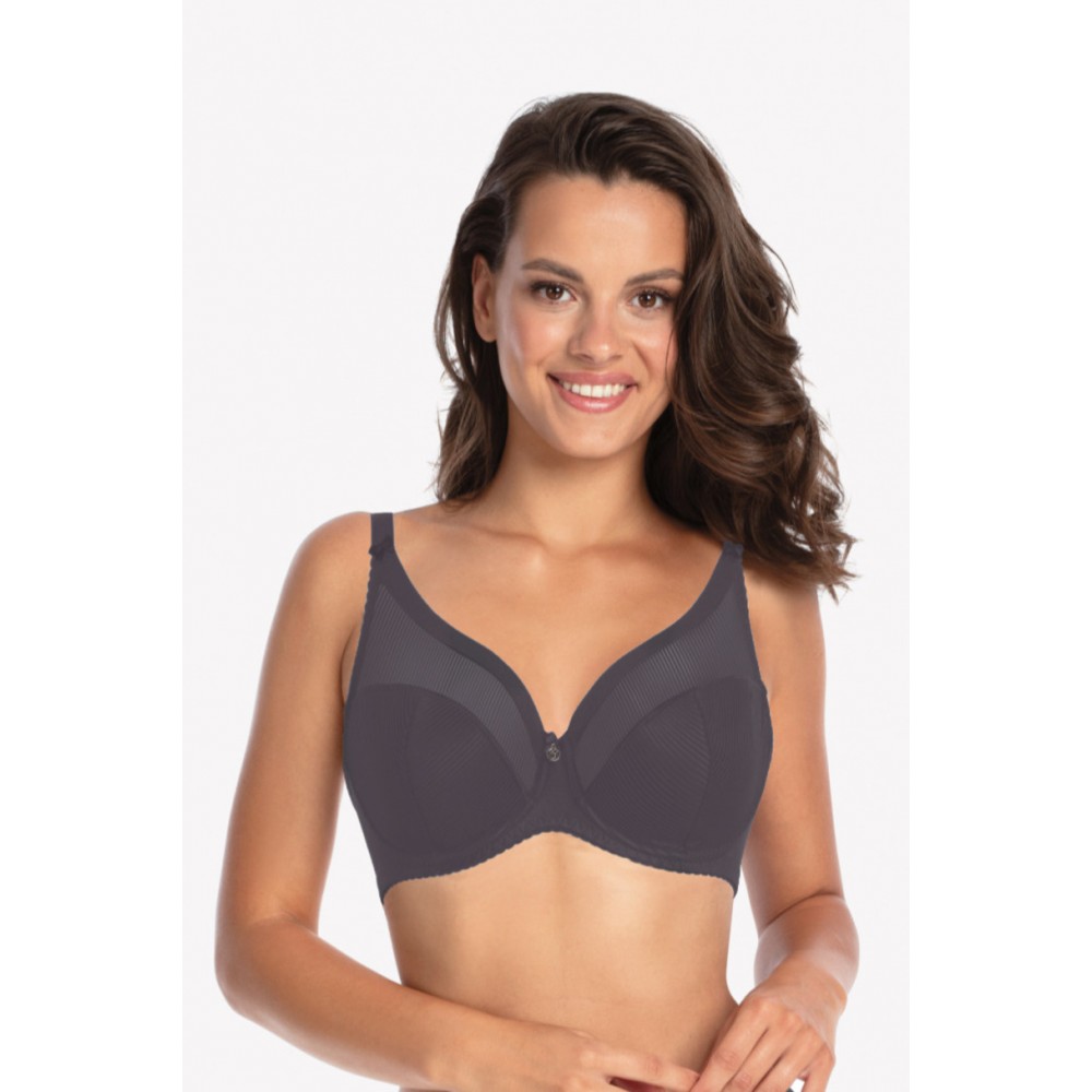 Бюстгальтер з напівпідкладкою, чашечки з ребристої мікрофібри, нижня частина чашечки зсередини підкладена бавовною, верхня лінія оздоблена плоскою окантовкою, бретельки не знімаються
