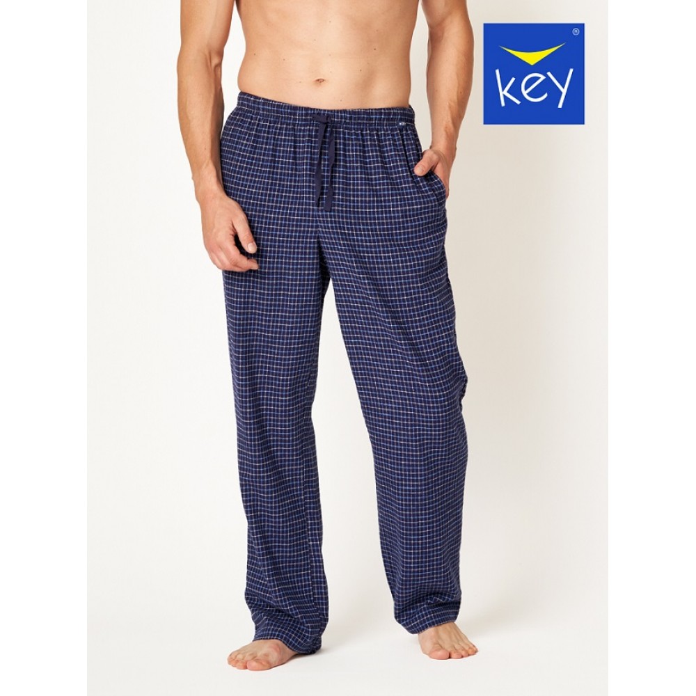 Класичні штани прямого крою зі зручним, м'яким еластичним поясом та шнурком. Застібка на ґудзики спереду та глибокі бічні кишені. Виготовлені зі 100% бавовняної фланелі.