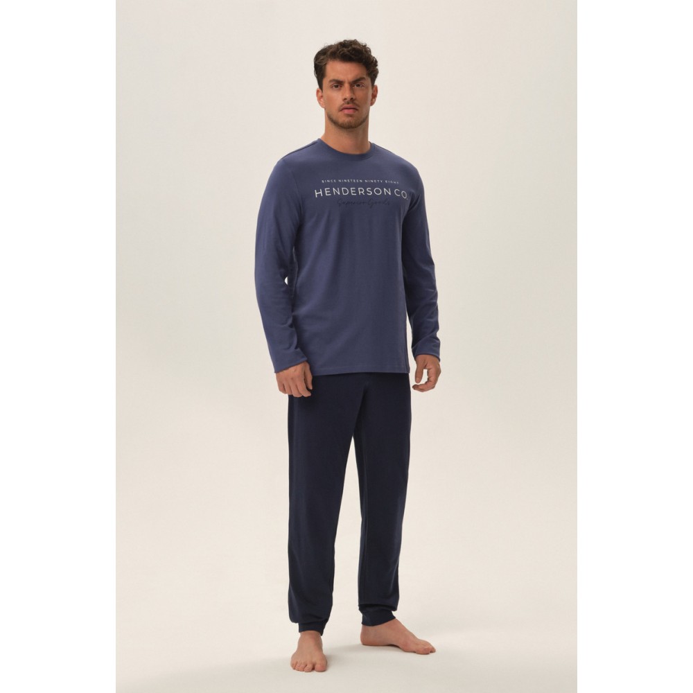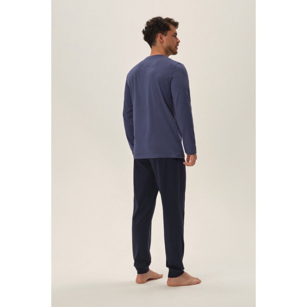 Чоловіча піжама з високоякісної бавовни. Довгі рукави, довгі однотонні штани та ребристі манжети. Принт спереду.